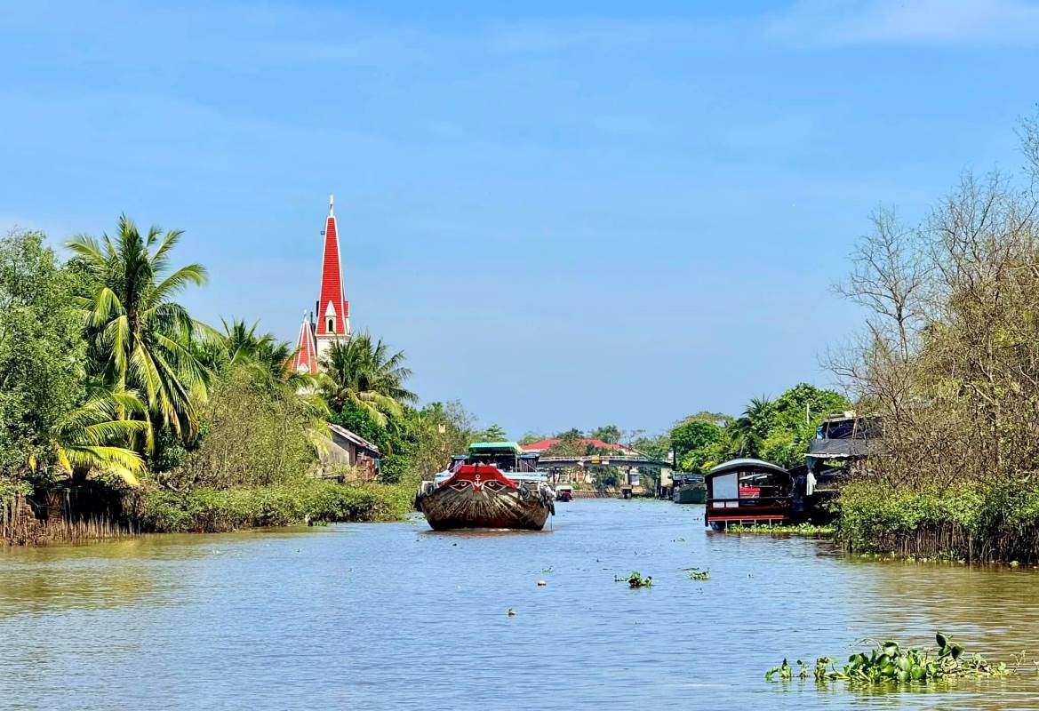 Stop at a local garden, where you’ll savor fresh tropical fruits while enjoying the melodies of traditional southern Vietnamese folk music. Then, head to Tan Phong Island, where you can bike or stroll along village paths, passing by orchards, schools, churches, pagodas, and traditional homes. Along the way, visit local artisans who weave dried water hyacinth into beautiful handmade products like baskets, bags, hats, and shoes.
